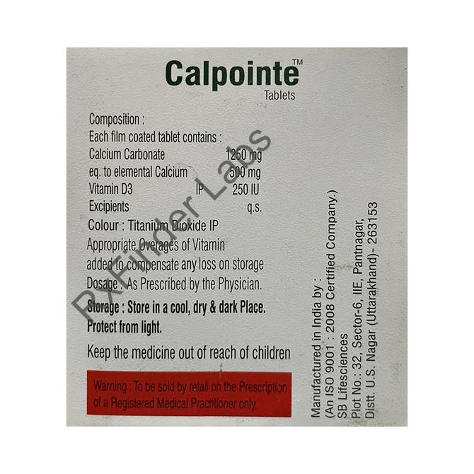 Calpointe Tablet is a combination of two nutritional supplements: Calcium and Vitamin D3. Calcium is added as a dietary supplement when the amount of calcium taken in the diet is not enough. Vitamin D3 is a form of vitamin D. It raises vitamin D levels in your blood. This in turn raises calcium levels in your blood by helping you absorb more calcium from food.