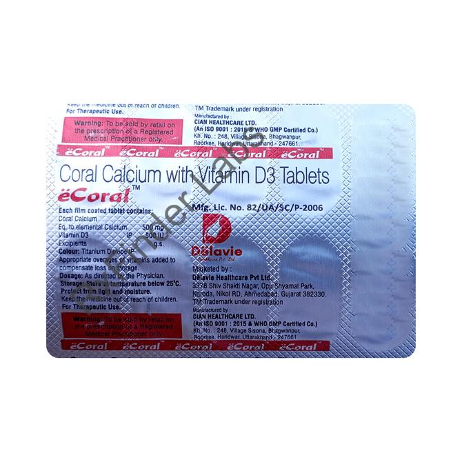 Ecoral Tablet is a combination of two nutritional supplements: Calcium and Vitamin D3. Calcium is added as a dietary supplement when the amount of calcium taken in the diet is not enough. Vitamin D3 is a form of vitamin D. It raises vitamin D levels in your blood. This in turn raises calcium levels in your blood by helping you absorb more calcium from food.