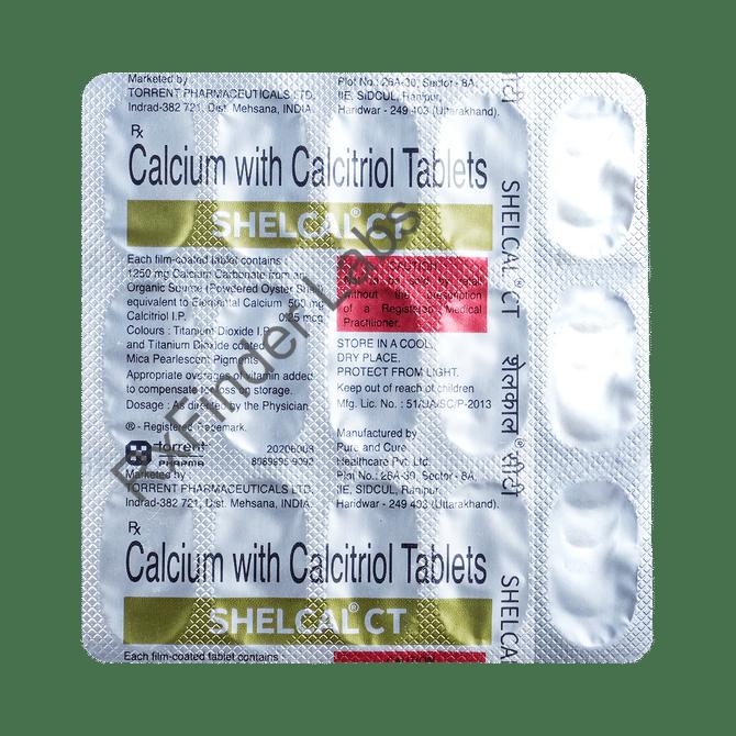 Shelcal CT Tablet is a combination of two nutritional supplements: Calcium and Vitamin D3. Calcium is added as a dietary supplement when the amount of calcium taken in the diet is not enough. Vitamin D3 is a form of vitamin D. It raises vitamin D levels in your blood. This in turn raises calcium levels in your blood by helping you absorb more calcium from food.